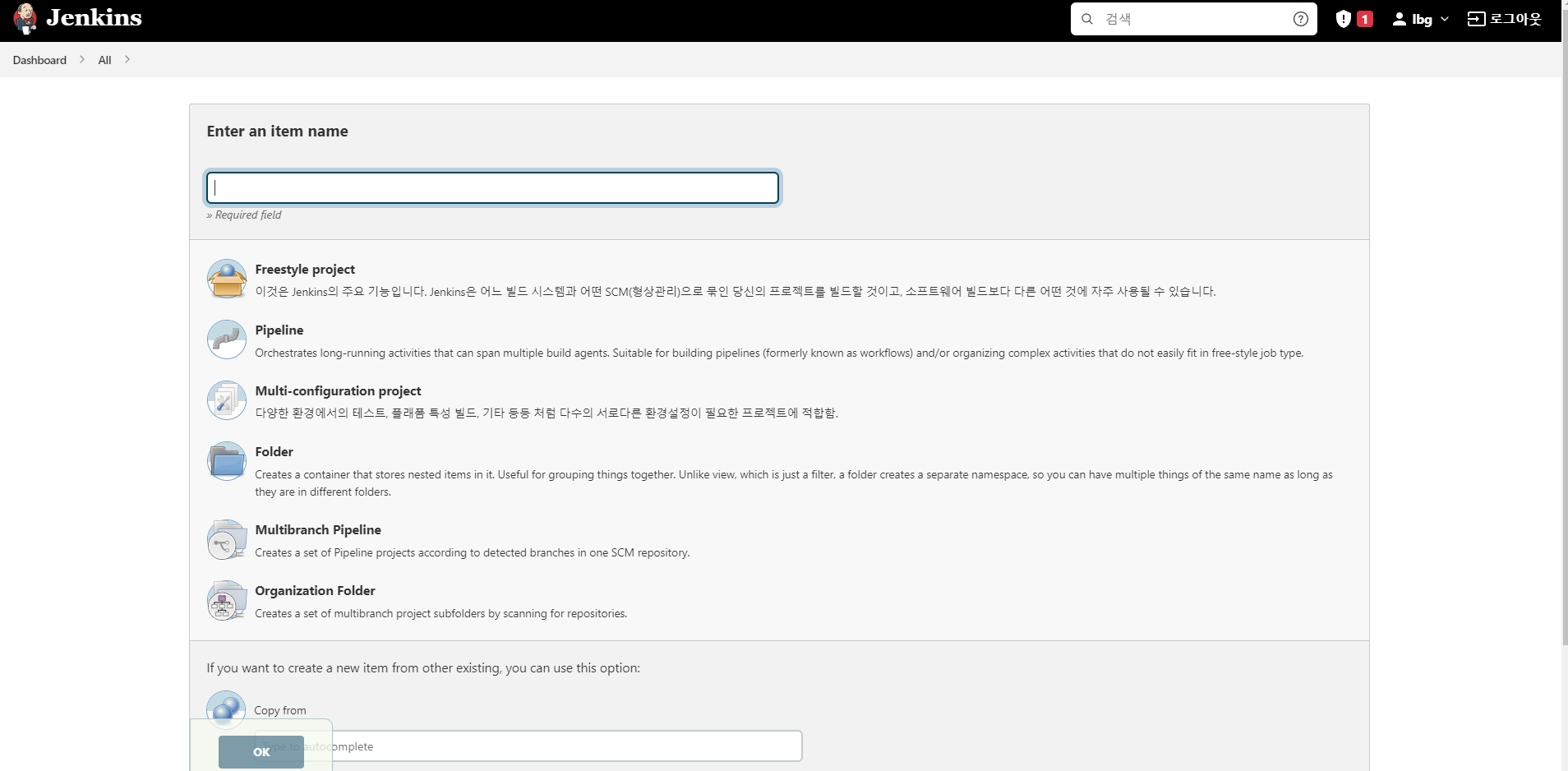프로젝트 이름을 입력하고 Freestyle project으로 생성한다.