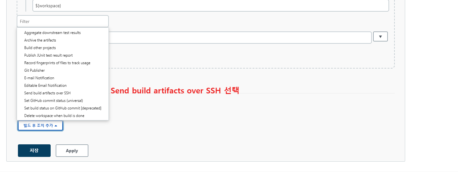 자동배포를 SSH를 통해서 하는경우 데시보 -> Jenkins 관리 -> 플러그인 관리 -> 설치 가능에서