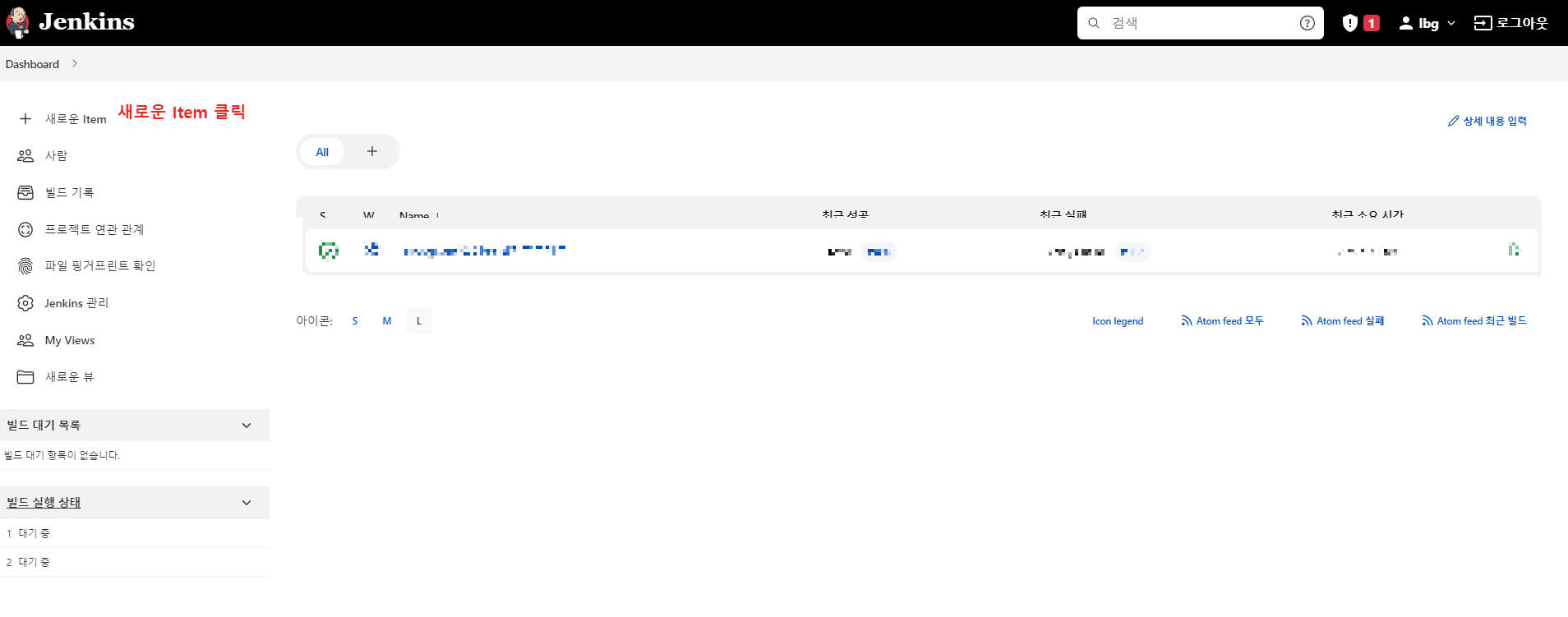 이후 데시보드에서 생성된 프로젝트 선택후 [지금 빌드]를 누르면 빌드가 되는것을 확인할 수 있다.