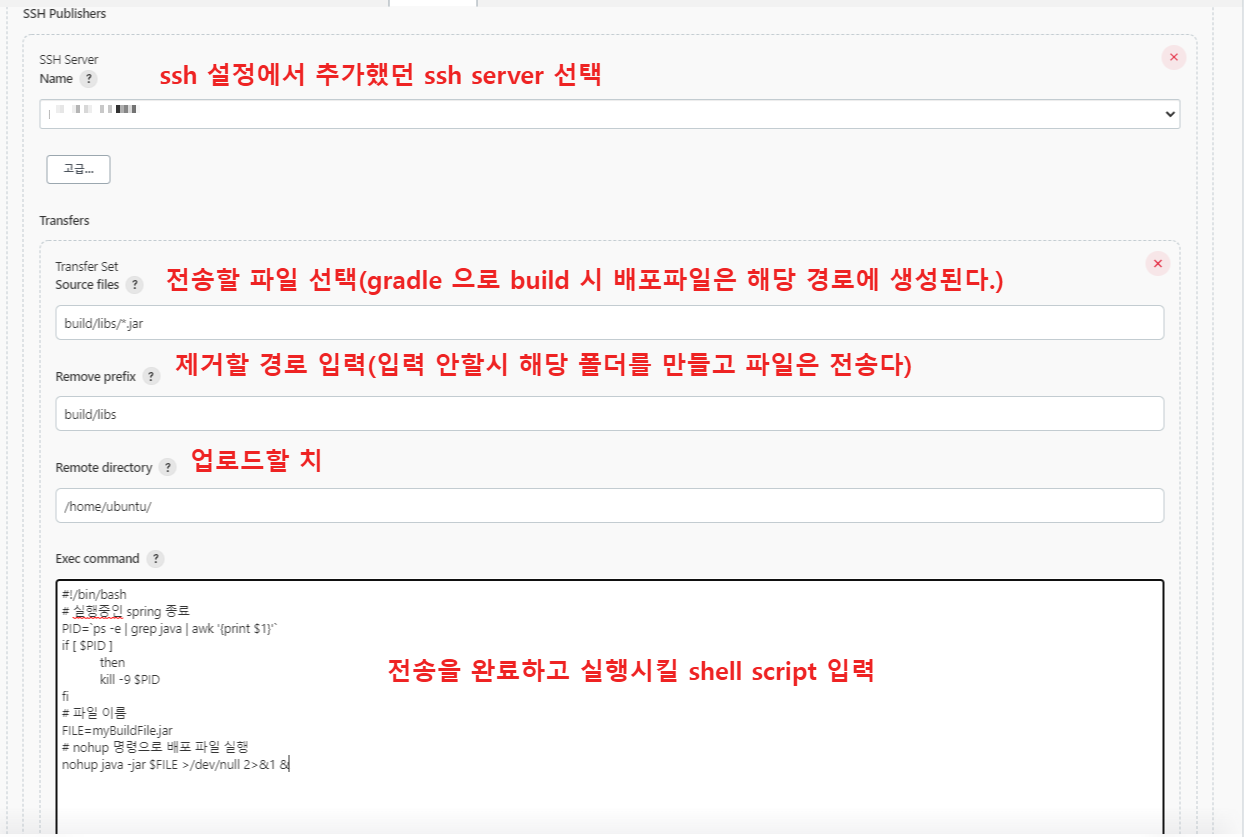 자동배포는 Jenkins에서 SSH 연결을 통해 배포파일 업로드 및 Shell Script 실행하는 방식으로 진행되며 현제 Ubuntu 20번대 버전에서는 Jenkins에서 SSH 연결을 하지 못하는 버그가 있으므로 참고하면 된다.